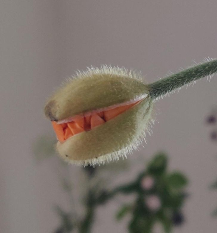 13. “This poppy flower blooming looks like it has fangs.”